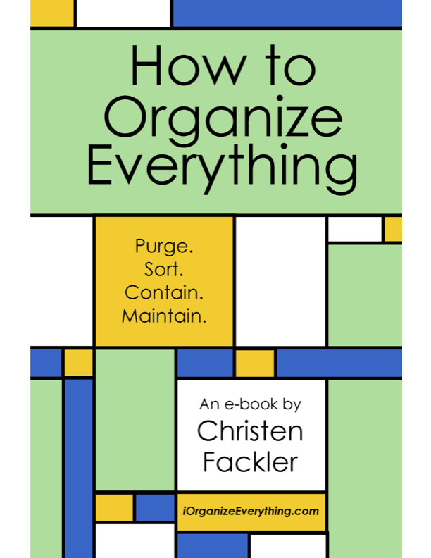 The book is a concise and easy-to-follow guide that includes links to other helpful resources, illustrations, and before-and-after photos. Christen has used this process with great success since 2009 when she started her business, iOrganize. Happy Organizing!